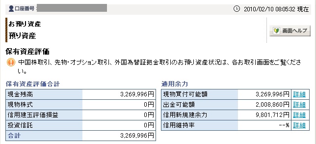 02月10日口座残高 3,269,996円