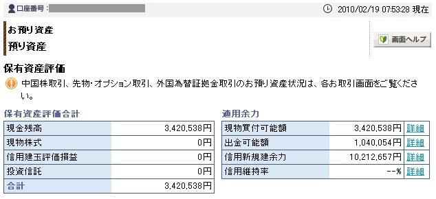 02月19日口座残高 3,420,538円