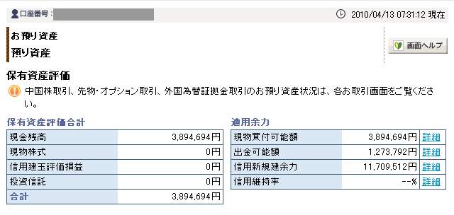 04月13日口座残高 3,894,694円
