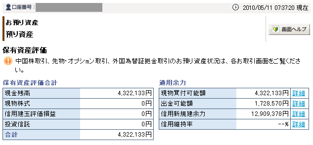 05月11日口座残高 4,322,133円