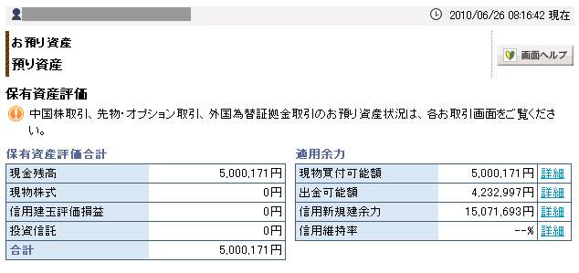 06月26日口座残高 5,000,171円
