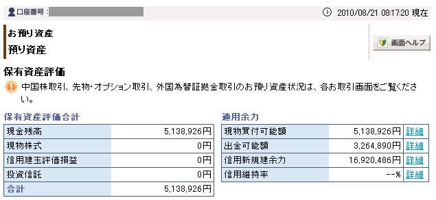 08月21日口座残高 5,138,926円