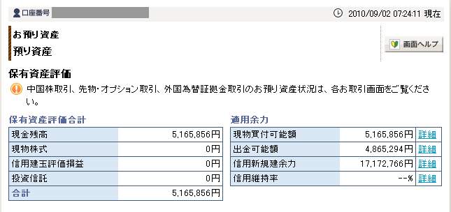 09月02日口座残高 5,165,856円