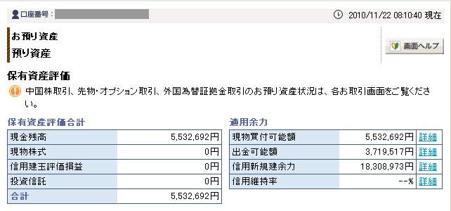 11月22日口座残高 5,532,692円