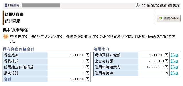 9月29日の口座残高