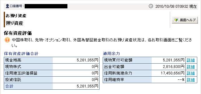 10月06日の口座残高