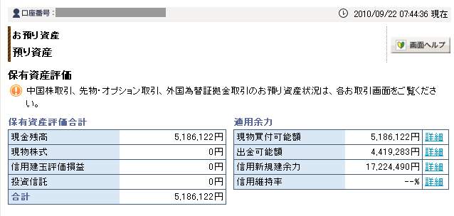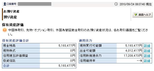 09月24日口座残高 5,193,477円