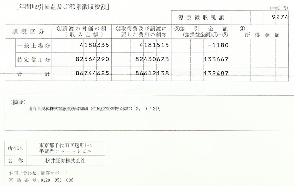 平成21年分の特定口座年間取引報告書